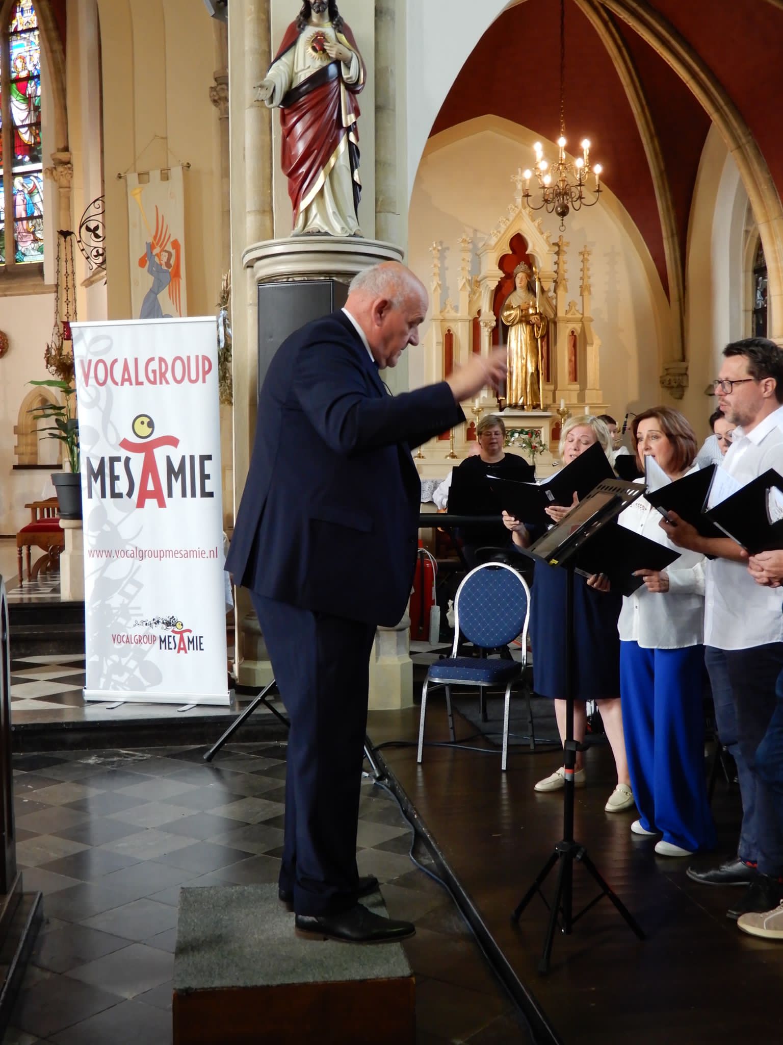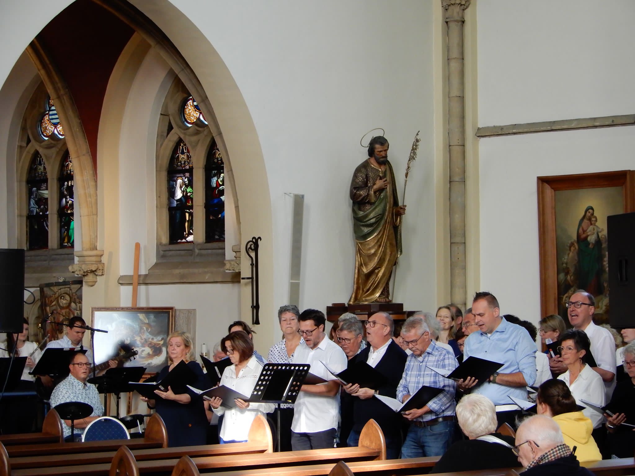 Zondag 8 oktober was een dag met een gouden randje, ons koor bestond toen 45 jaar! We begonnen met een mooie viering met vele supporters en sympathisanten van het koor. We zongen liederen die uit ons uitgebreide repertoire. De liedjes waren uitgezocht door de muziekcommissie met hulp van de leden. Het was een mooie viering, gevolgd door een gezellig samenzijn in het scoutinggebouw. We stonden stil bij het 45-jarig bestaan en zetten een aantal mensen in het zonnetje. Speciaal voor het jubileum organiseerden we Heel Mes Amie Bakt. Een aantal leden zetten de lekkerste creaties op tafel, waar we samen van hebben genoten! De winnaars waren Jerôme, Jos en Carin, proficiat!
